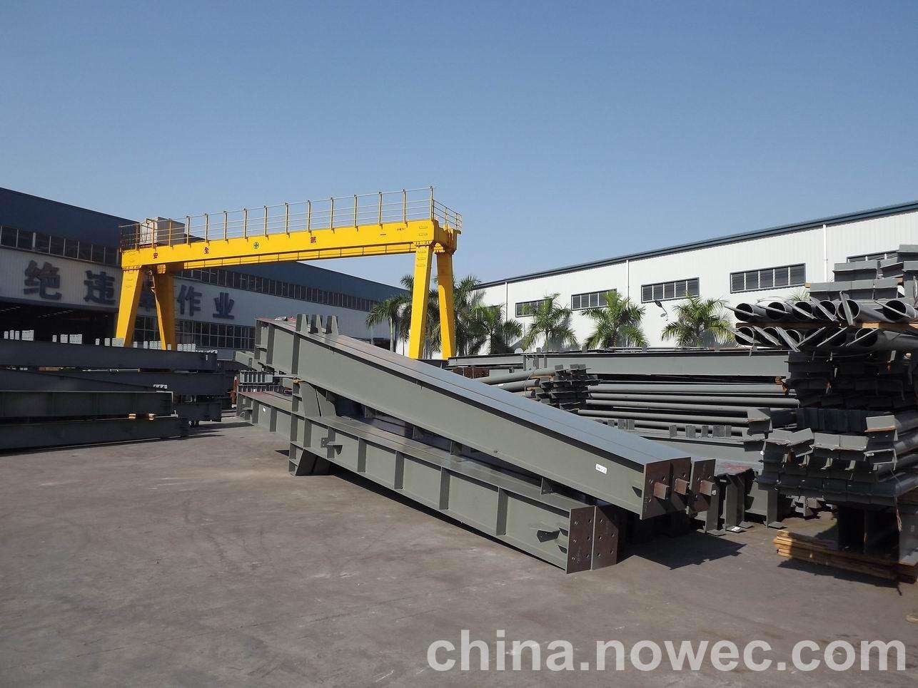 条状单元一般沿长跨方向分割,其宽度约为1~3个网格,其长度为l2或l2/2(l2为短跨跨距)。块状单元一般沿新乡网架平面纵横向分割成矩形或正方形单元。每个单元的重量以现有起重机能胜任为准。条(块)与条(块)之间可以直接拼装,也可空一网格在高空拼装。由于条(块)状单元是在地面拼装,因而高空作业量较高空散装法大为减少,拼装支架也减少很多,又能充分利用现有起重设备,故较经济。这种安装方法适用于分割后网架的钢度和受力状况改变较小的各类中小型网架,如两向正交正放四角锥、正放抽空四角锥等网架。